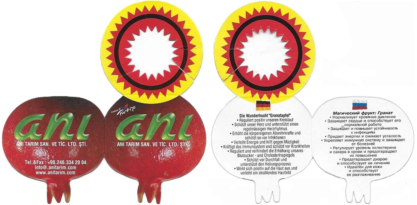Anı Tarım Meyve Gıda Turizm Nakliye Hayvancılık San. ve Tic. Ltd. Şti. Location: Serpil Village, 32502 Eğirdir, Isparta, Turkey Web: [https://www.anitarim.com.tr/en/] Brands: Ani (b/l); Ani Tarim (b/l, crt);