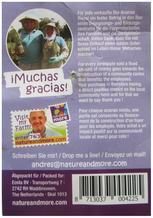 . . . Re1: citations & photos from Nature & more website: . “…Hi, I'm Andres Nuñez and I grow organic pineapples for Nature & More in Costa Rica. Our company is called Finca La Virgen, after the nearest village… …We are located in the valley next to Volcano Poas, an active volcano… …Finca La Virgen is part of Dole Organic. It was founded in 1991…” .  .