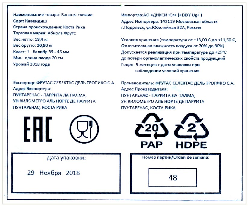 . . . Re: sidewall sticker found on fruit box with "Abiola Fruits" bananas inside: .