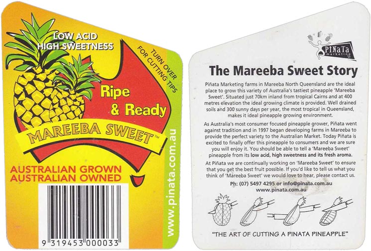 Piñata Farms Pty Ltd Location: 382 Scurr Rd, 4512 Wamuran, Queensland (Qld), Australia Web: [https://www.pinata.com.au] [https://www.facebook.com/pinatafarms/] Brands: Mareeba Sweet (crt, url);