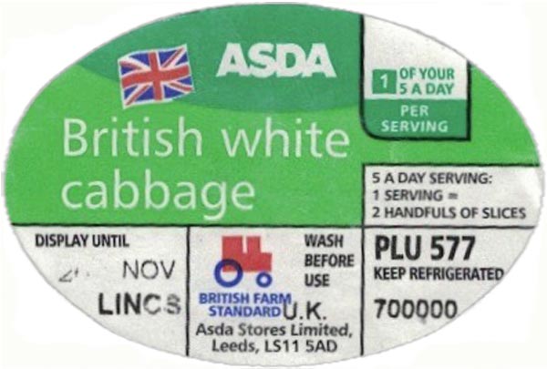 Brands: ASDA (logo); ASDA British Farm Standard (logo); ASDA Organics; Garden Gang (b/l); Smart Price (b/l I); Smart Price (b/l II);