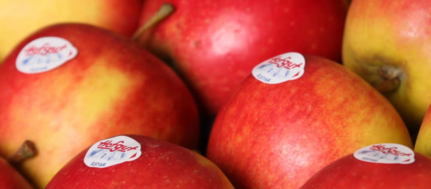 . . . Re1: photo of stickers with brands “Hofgut” from website of Hauschildts Obsthof company: .