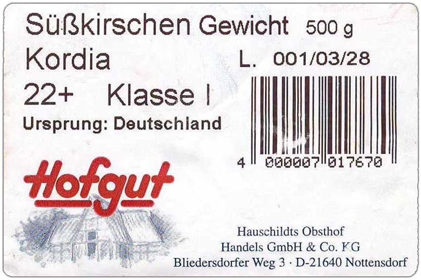 Hauschildts Obsthof Handels GmbH & Co. KG Location: Bliedersdorfer Weg 3, D-21640 Nottensdorf, Germany Web: [https://www.hauschildts-obsthof.de/Obsthof-Hauschildt] Brands: Hofgut Süßkirschen (sweet cherry); Hofgut Elstar (apple);