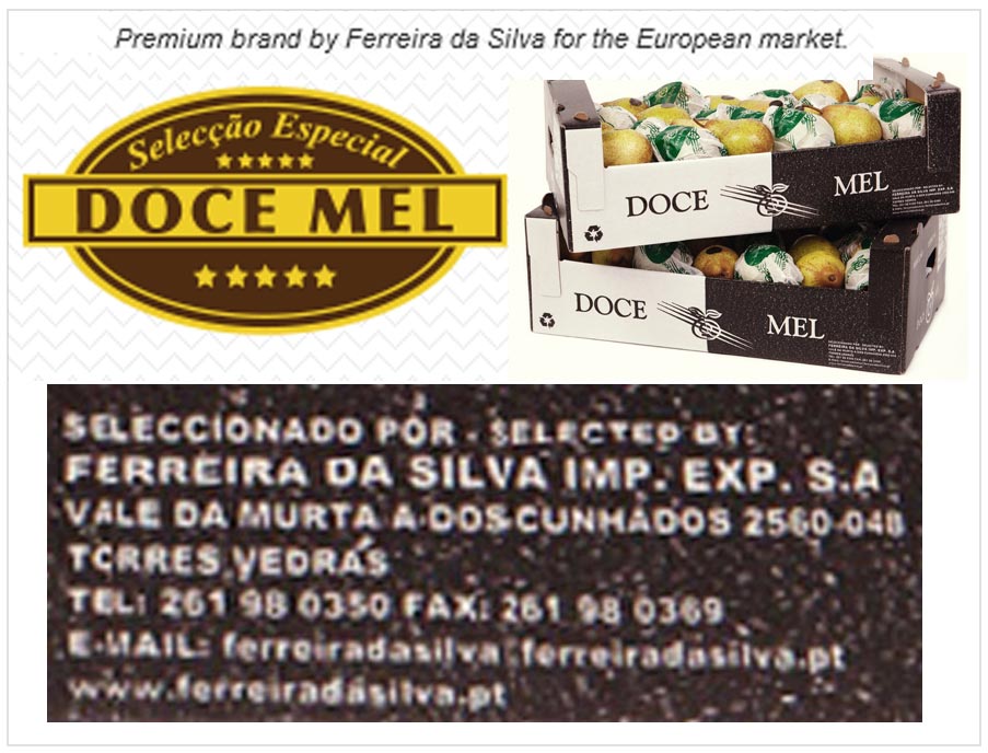 Ferreira da Silva - Importaçãoe Exportação, S.A. Location: Vale da Murta 2560-048, A-dos-Cunhados, Portugal Web: [http://www.ferreiradasilva.pt/] Brands: Ferreira da Silva (logo); Doce Mel (b/l I); Doce Mel (b/l II);