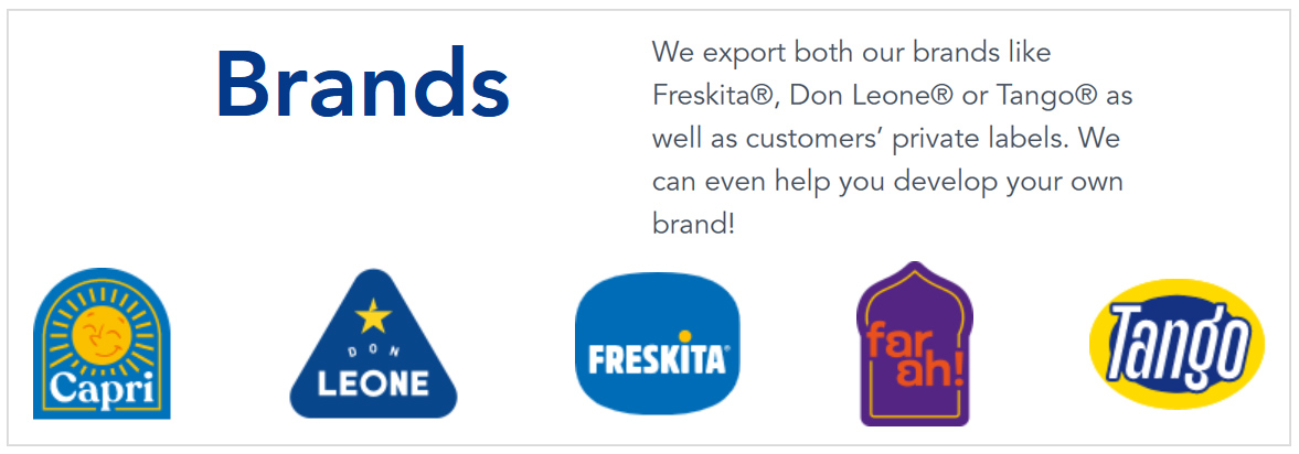 . Owner of “Marquise” brand is Tuchok S.A. company. Owner of “Mack” brand is MACK Wholesale company [http://www.mwmack.co.uk]. Owner of “Del Monte” brand is Del Monte Fresh Produce Company[https://fruits.com] Owner of “Belbana” brand is Belbana NV company.
