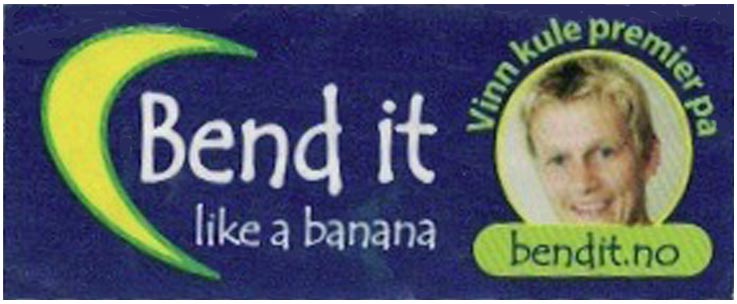 Brands: Bendit Bama (b/l I); Bend It Like a Banana (sol12); Just Bendit (b/l II); Bendit (b/l III); Bli Med! Bendit Support Club (b/l, pic); Bendit (word); Snowball(word); Cevita (b/l);