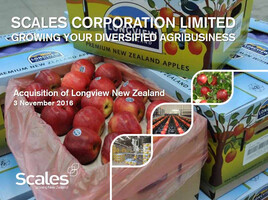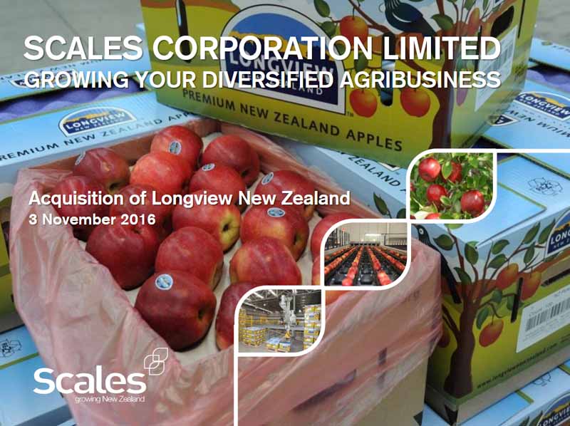 “… Scales Corporation Limited (Scales), through its wholly owned subsidiary Mr Apple New Zealand Limited (Mr Apple), has agreed to acquire Longview Group Holdings Limited (Longview), a standalone Hawke’s Bay grower, packer, and marketer of apples…