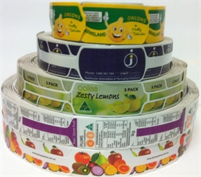 Слева направо: рулоны сеточной тары [2], рулон бандерольной ленты [2] и рулон ярлыков типа "wine-glass" [4].