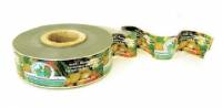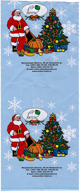 Когда чуть выше по тексту шла речь об упаковке плодов в сеточную тару, то на иллюстрациях показывались сетки, замкнутые не ярлыками типа "wine-glass", но с помощью лент, а точнее - с помощью бандерольных лент, как их называют профессионалы-упаковщики. Внимательный коллекционер, рассматривая широко представленные в интернете коллекции своих зарубежных коллег [1],[3],[5],[6] легко может найти среди представленных материалов обязательно и в заметном количестве ленточные сеточные ярлыки. Они представляют собой нестандартные фрагменты (как правило с повторяющимся рисунком) тех рулонов бандерольных лент, которые заправляются в автоматизированные упаковочные механизмы для сеточной тары.