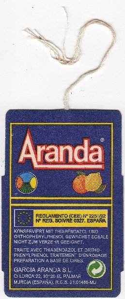 Единственное замечание по этому классу этикеток, уже выделенному в отдельную группу предметов коллекционирования [1], состоит в том, что в нее попали вкладыши во фруктовую тару, которые ну никак не подпадают под определение "hang tags" (висячие ярлыки): в них нет отверстий для подвешивания и они просто вкладываются в тару с плодами.