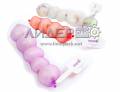 Название "wine-glass" они получили из-за своей формы, напоминающей винный бокал - фужер, и напрашивающимся названием в русскоязычной терминологии для подобных ярлыков в коллекциях фруктовых этикеток могло бы стать название "фужеретка", очевидным образом объединяющее в себе слова "фужер" и "этикетка". Название может быть и спорное, но даже в таком почти жаргонном звучании оно однозначно описывает почти все множество подобных этикеток. Именно "почти", т.к. ярлык в крайней правой позиции совсем не напоминает своей формой фужер. Поэтому другим подходящим названием для таких этикеток могло бы стать название "галстук" из-за того, что подобные ярлыки висят на сетках с фруктами наподобие небольших галстучков. Этот термин представляется более универсальным, т.к. он уже будет применим и для ярлыков, форма которых вовсе не напоминает фужер. Таким образом, в классе "сеточные ярлыки" вполне четко определяется основная подгруппа этикеток, которую можно назвать либо wine-glass, либо фужеретки, либо галстуки, кому как нравится. Но пойдем дальше.